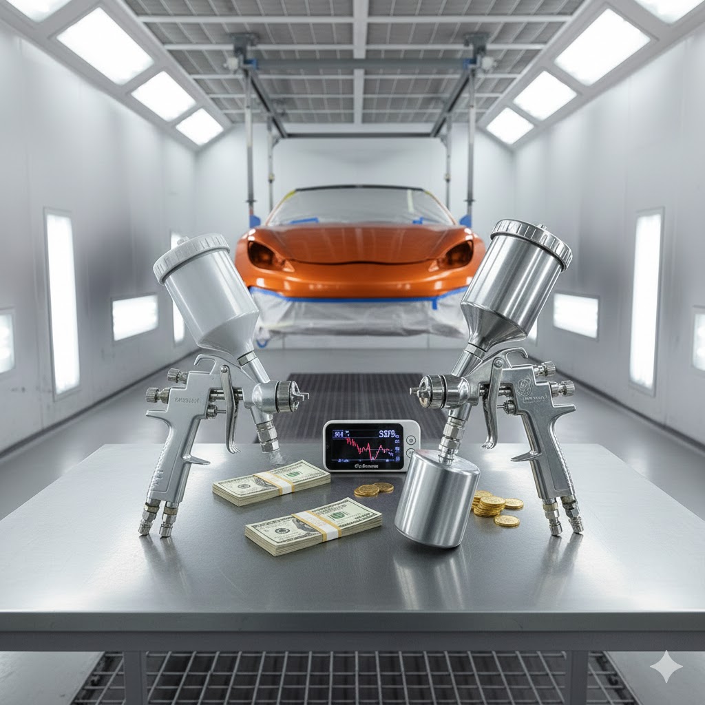 Khi đầu tư súng phun sơn ô tô, bạn không chỉ tính đến chi phí mua thiết bị ban đầu mà còn phải cân nhắc chi phí vận hành và bảo dưỡng trong suốt quá trình sử dụng. Đây là yếu tố quan trọng ảnh hưởng đến tổng chi phí sở hữu (Total Cost of Ownership).