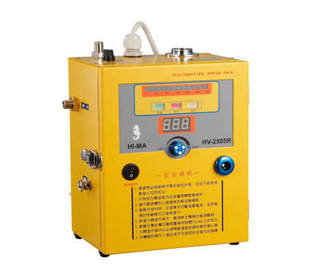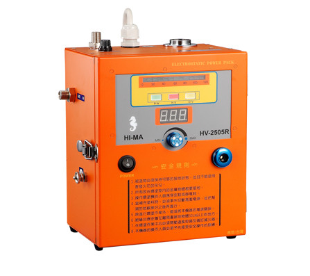 - Bộ cấp liệu sơn phủ được điều áp và một vòi phun tĩnh điện. Súng phun sơn tĩnh điện HIMA dùng cho các bộ phận chi tiết, các bộ phận của đồ dùng gia đình, các phần tử tự động, các đồ dùng làm bằng thép, mạ điện bảo vệ và các sản phẩm gỗ …v.v.