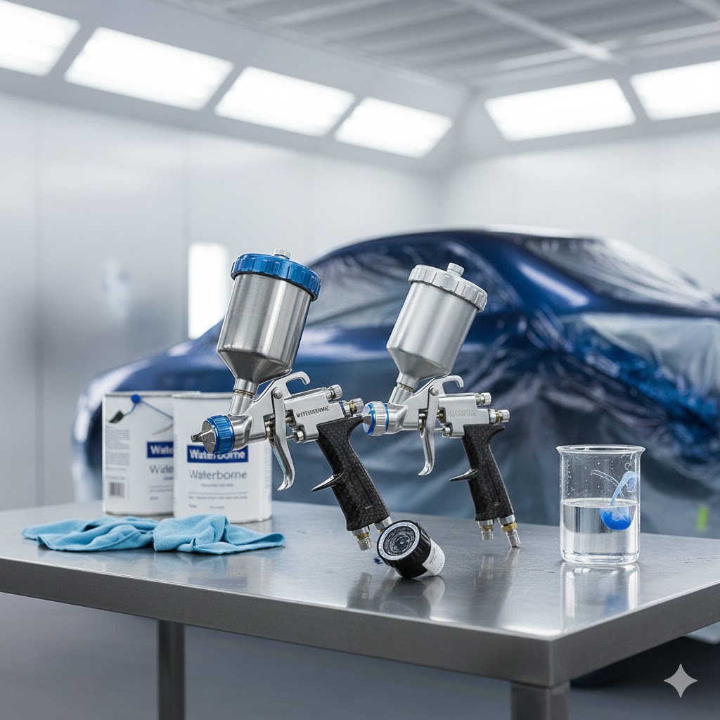Trong ngành sơn ô tô hiện đại, việc chuyển đổi sang súng phun sơn ô tô gốc nước không chỉ là xu hướng mà còn là yêu cầu bắt buộc về bảo vệ môi trường và sức khỏe người thợ. Sơn gốc nước với đặc tính độc hại thấp hơn, thân thiện với môi trường đang dần thay thế hoàn toàn sơn gốc dung môi truyền thống. Tuy nhiên, để phun sơn gốc nước đạt hiệu quả tối ưu, việc lựa chọn loại súng phun chuyên dụng phù hợp là vô cùng quan trọng và quyết định đến chất lượng bề mặt sơn cuối cùng.